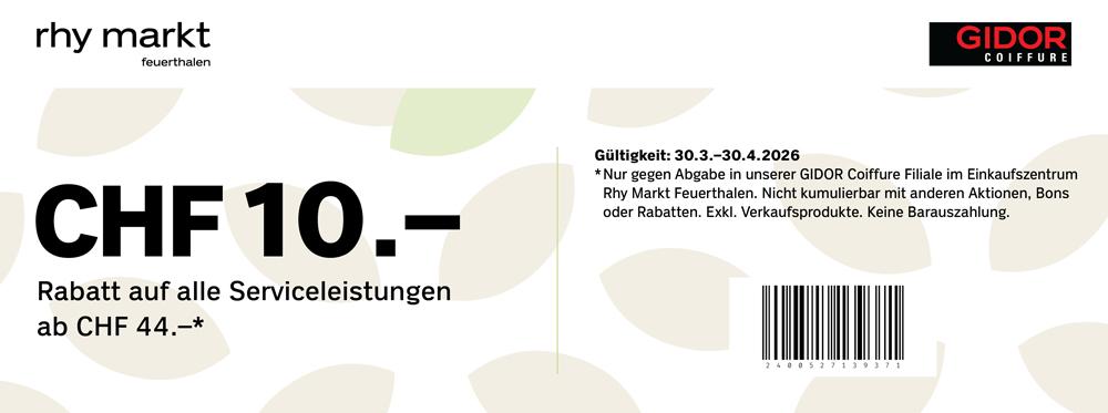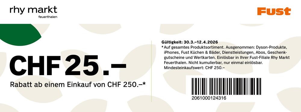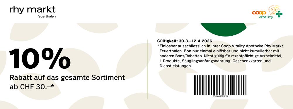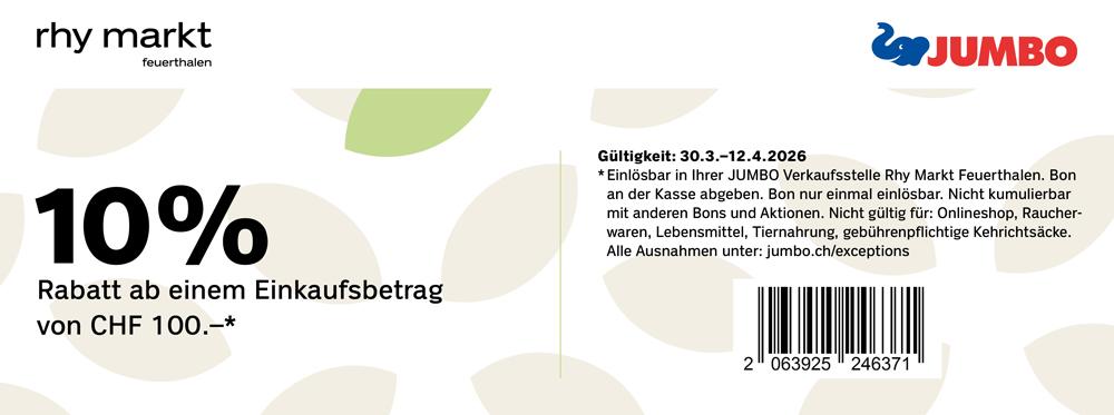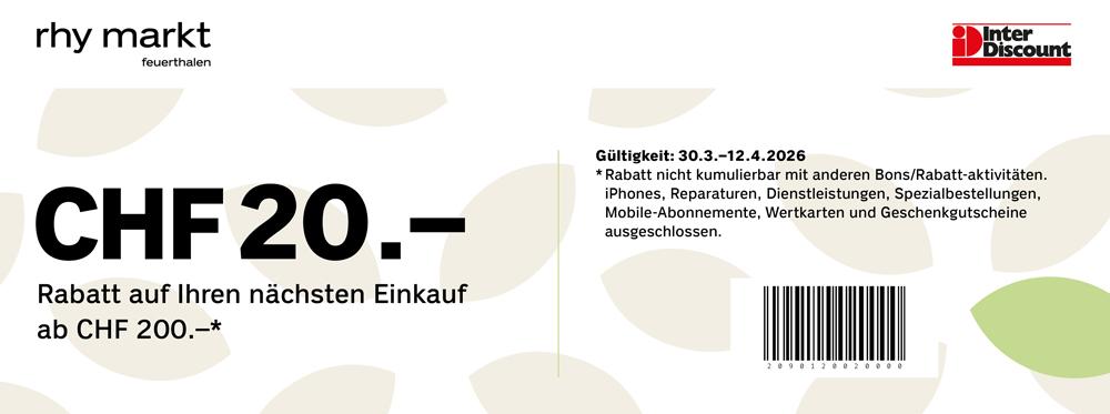 Bon im Rhy Markt im jeweiligen Geschäft vorweisen und von attraktiven Rabatten profitieren.