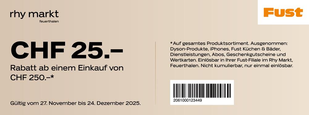 Wer teilnehmen möchte, wirft den ausgefüllten Wettbewerbstalon bis spätestens 17 Uhr am 24. Dezember in die Wettbewerbsurne oder scannt den QR-Code im Einkaufszentrum Rhy Markt Feuerthalen. Teilnahmebedingungen